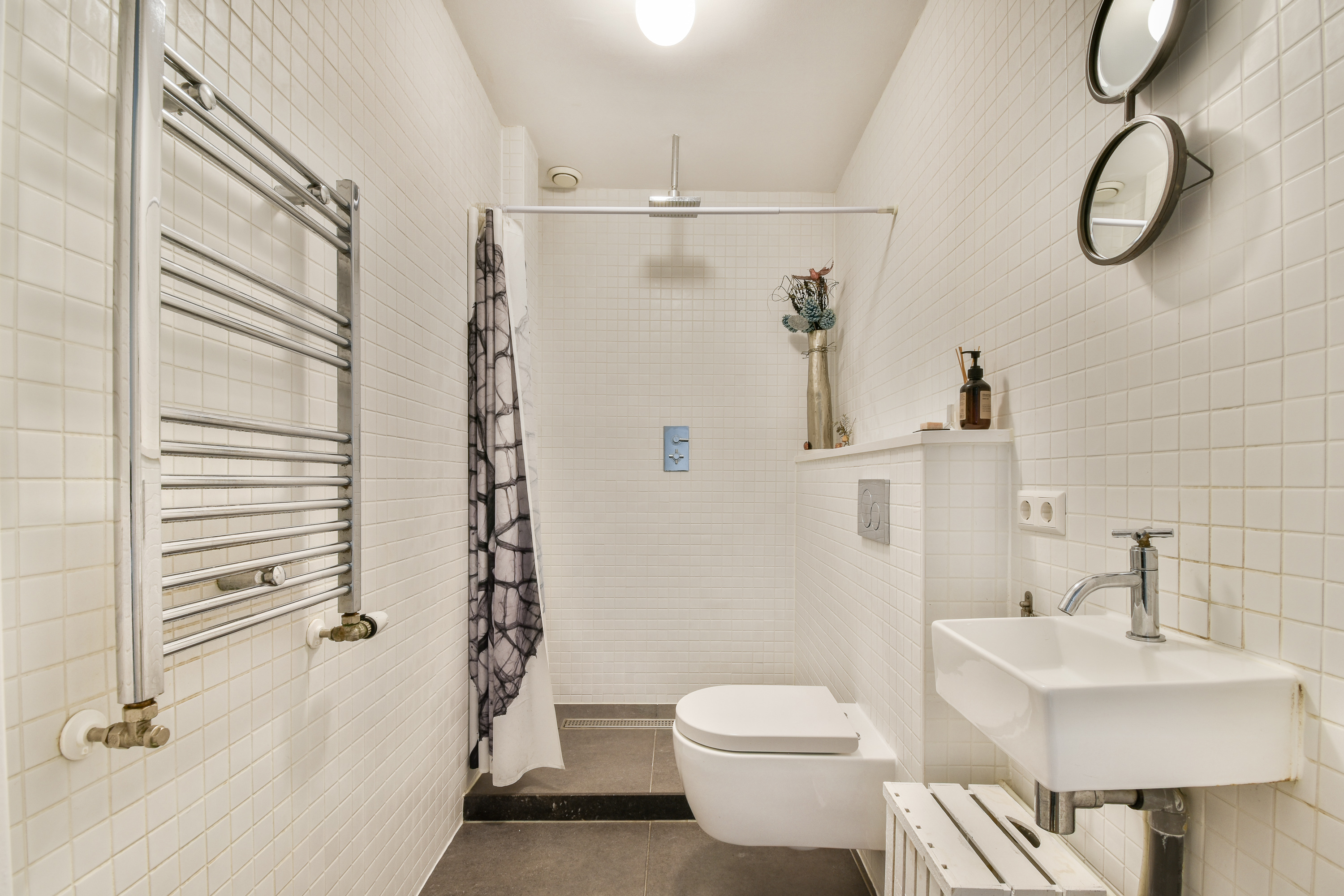 Hier bevindt zich een royale badkamer met ligbad, dubbele wastafel met meubel, inloopdouche en toilet. Tevens is er een aparte technische ruimte met cv-installatie en aansluiting voor wasmachine en droger.