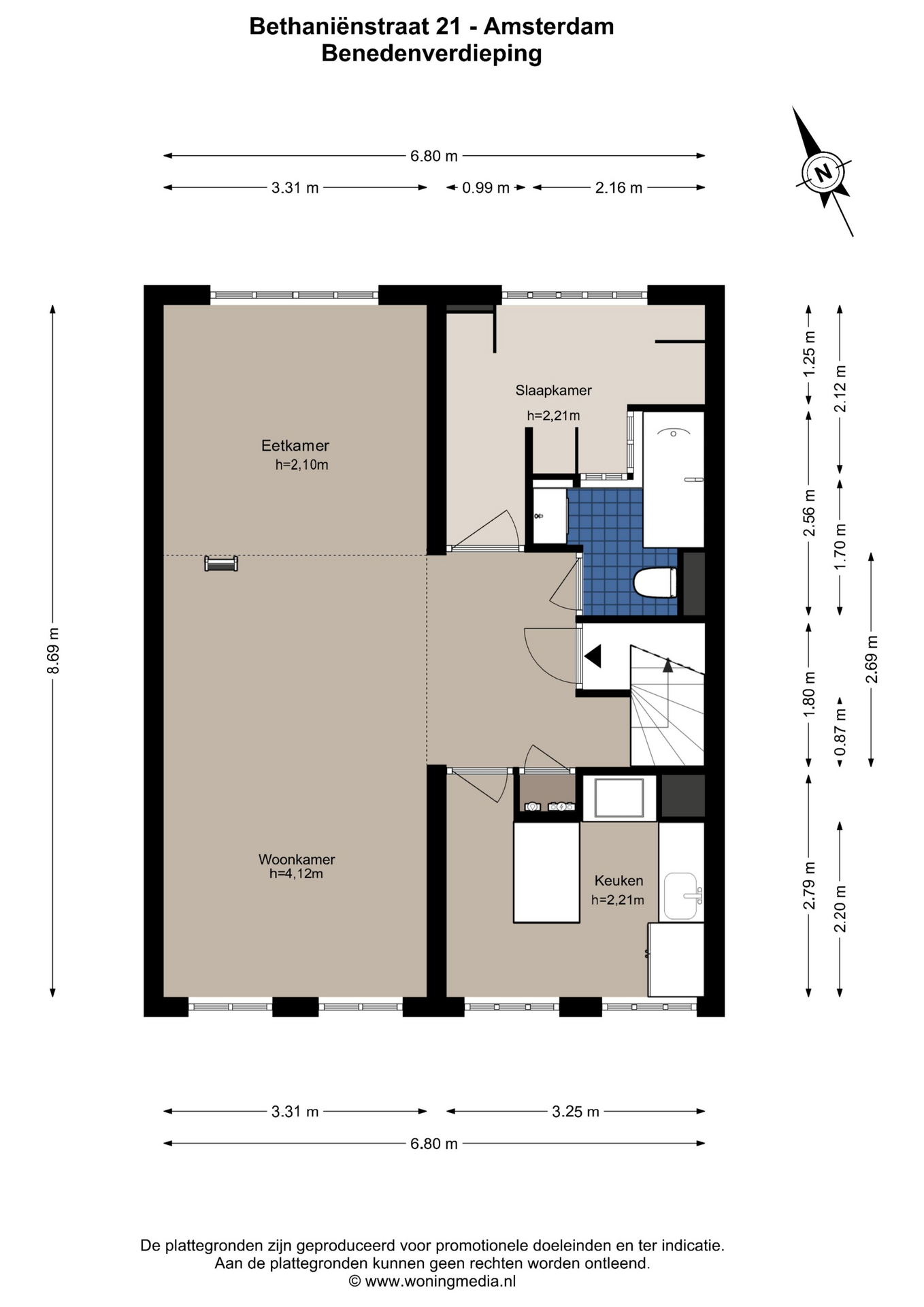 Deze informatie is door ons met de nodige zorgvuldigheid samengesteld. Onzerzijds wordt echter geen enkele aansprakelijkheid aanvaard voor enige onvolledigheid, onjuistheid of anderszins, dan wel de gevolgen daarvan. Alle opgegeven maten en oppervlakten zijn indicatief. Verkoper kan niet garanderen dat alle technische installaties voldoen aan de huidige NEN-norm. Koper heeft zijn eigen onderzoeksplicht naar alle zaken die voor hem of haar van belang zijn. Met betrekking tot deze woning is de makelaar adviseur van verkoper. Wij adviseren u een deskundige (NVM-)makelaar in te schakelen die u begeleidt bij het aankoopproces. Indien u specifieke wensen heeft omtrent de woning, adviseren wij u deze tijdig kenbaar te maken aan uw aankopend makelaar en hiernaar zelfstandig onderzoek te (laten) doen. Indien u geen deskundige vertegenwoordiger inschakelt, acht u zich volgens de wet deskundig genoeg om alle zaken die van belang zijn te kunnen overzien. Van toepassing zijn de NVM-voorwaarden.
