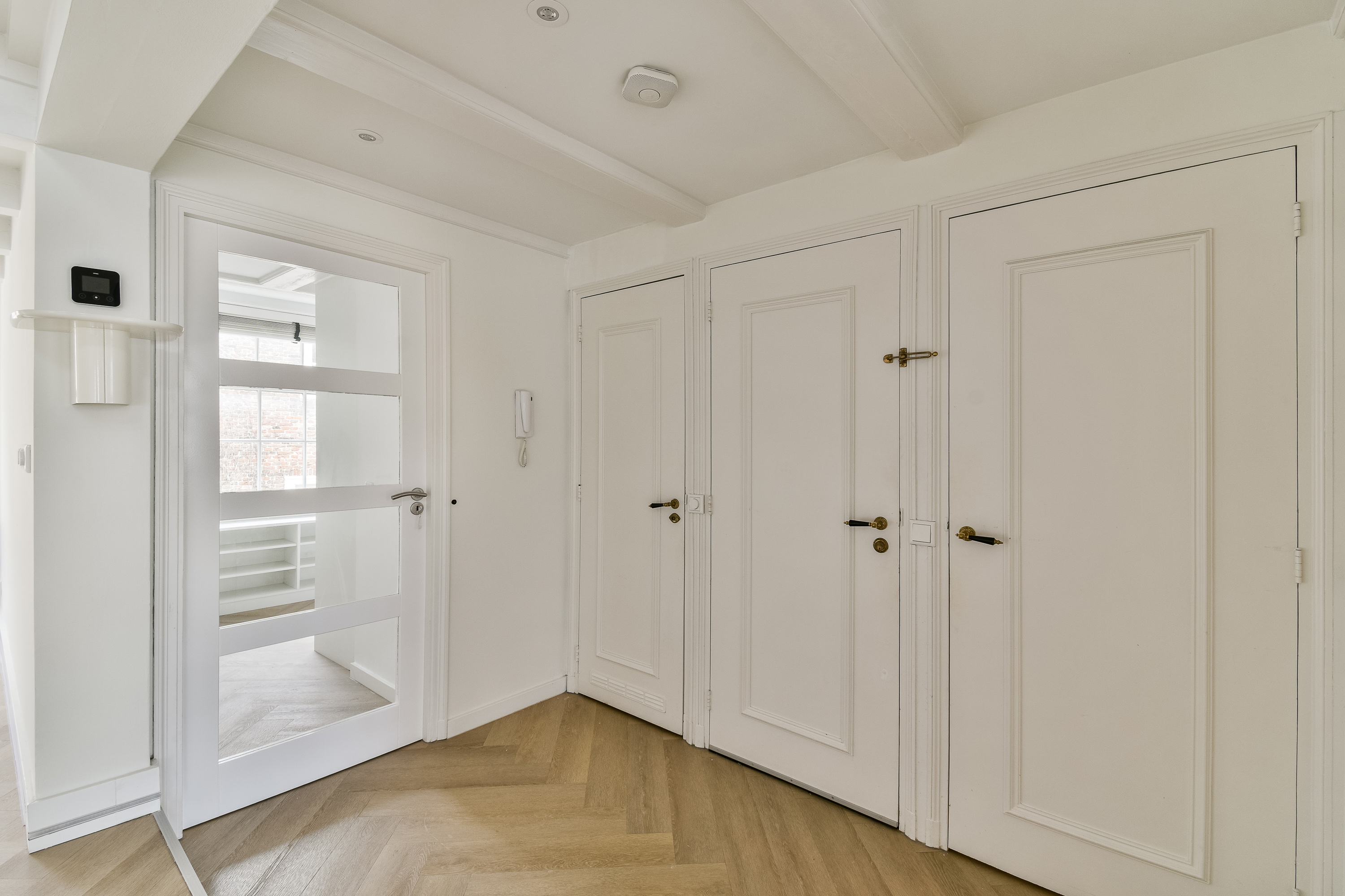Via het gemeenschappelijke trappenhuis bereikt u de entree van de woning op de tweede verdieping. Hier bevindt zich de eerste woonlaag, waar direct de doordachte en functionele indeling opvalt.