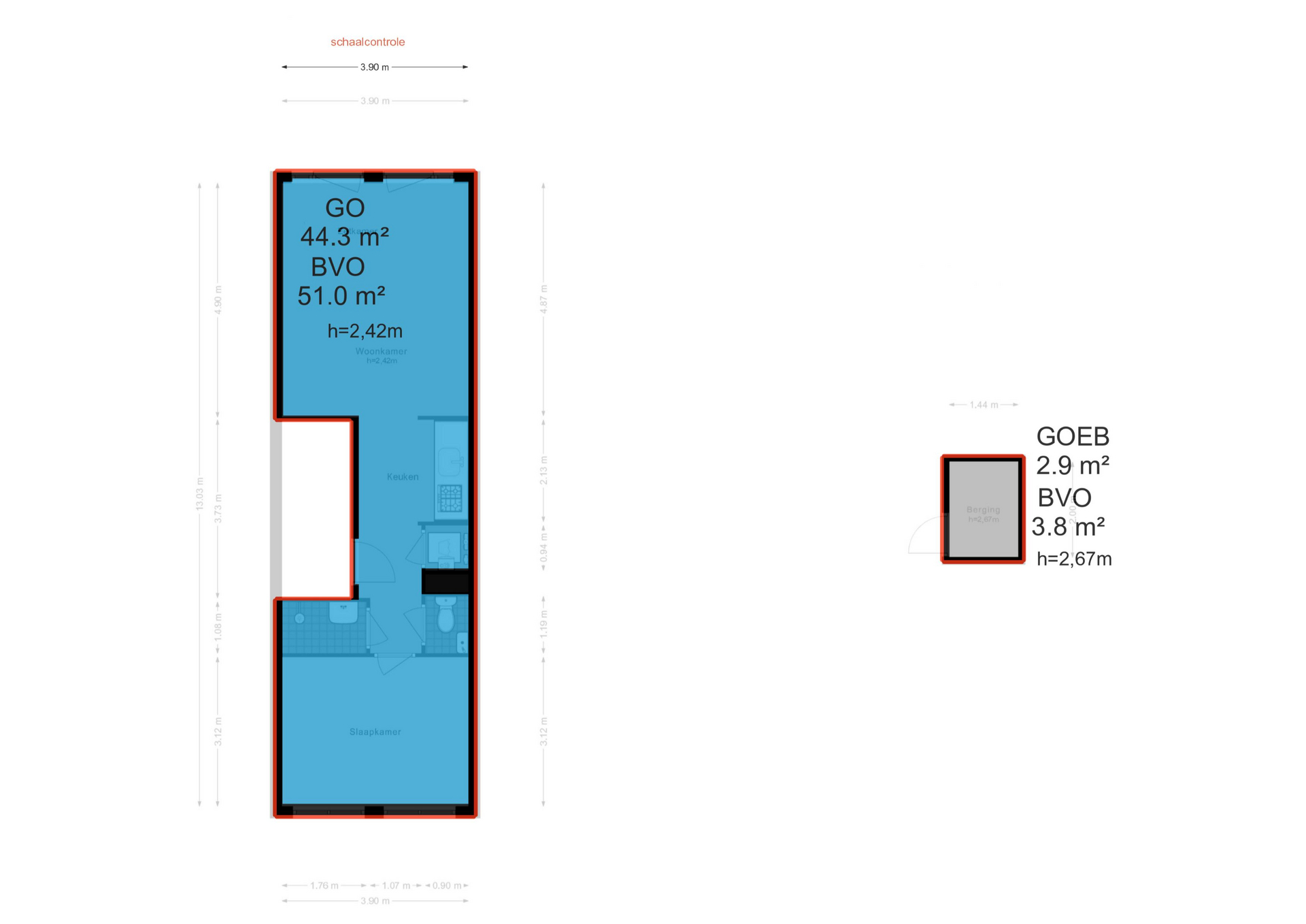 - Woonoppervlakte ca. 44 m² (NEN-2580 meetrapport aanwezig)