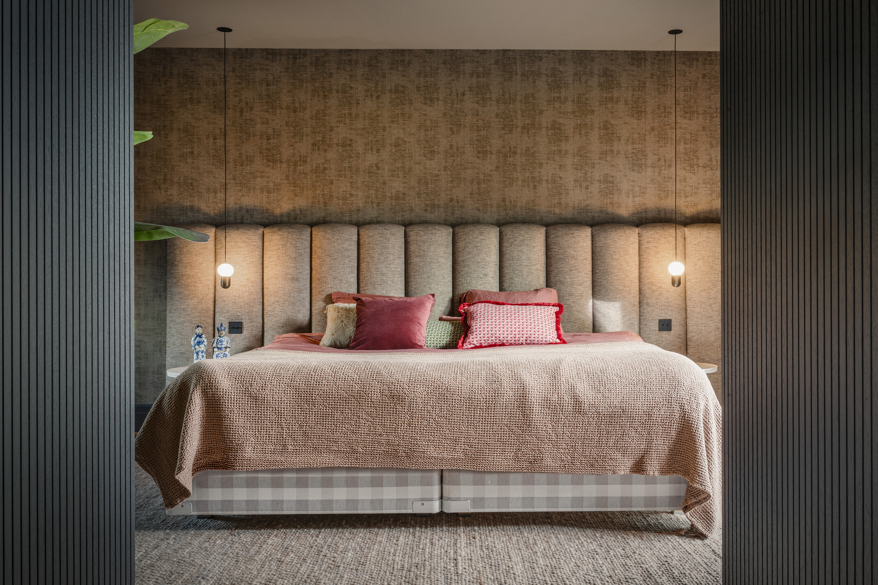 De bovenste woonlaag is ingericht als een privéverblijf. De master bedroom, walk-in closet en badkamer vormen samen een rustige, afgeronde leefomgeving.