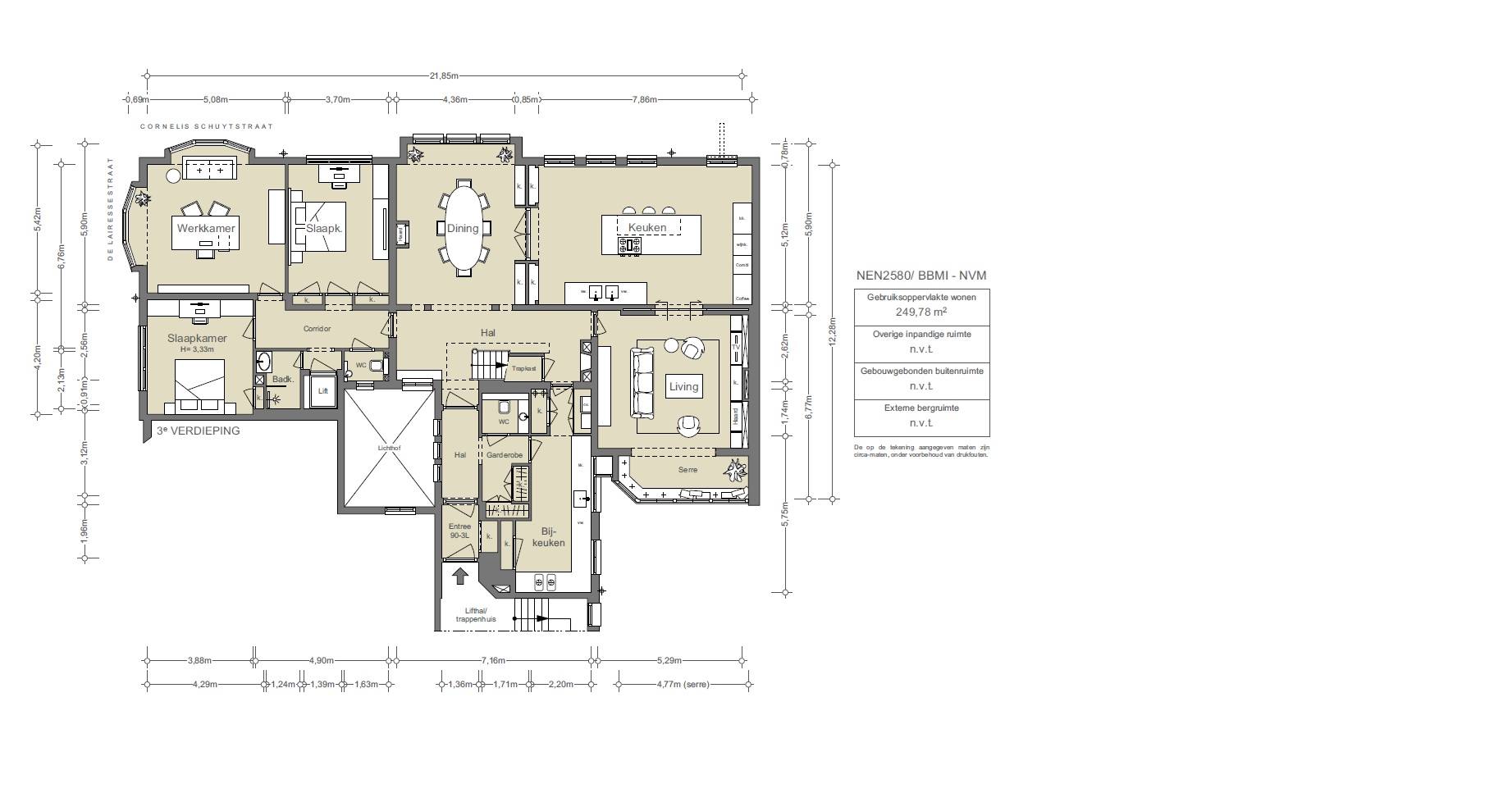 In recent years, the De Lairessestraat has evolved into a quiet, wide avenue with a pleasant balance between residential calm and urban vibrancy. Within walking distance are the Vondelpark and the Museum Quarter, home to the Rijksmuseum, the Van Gogh Museum and the Concertgebouw. The Cornelis Schuyt neighbourhood adds a refined mix of boutiques, specialty shops and restaurants - lively, yet with an almost village-like charm. Everything that makes Amsterdam Oud-Zuid so desirable is within easy reach.