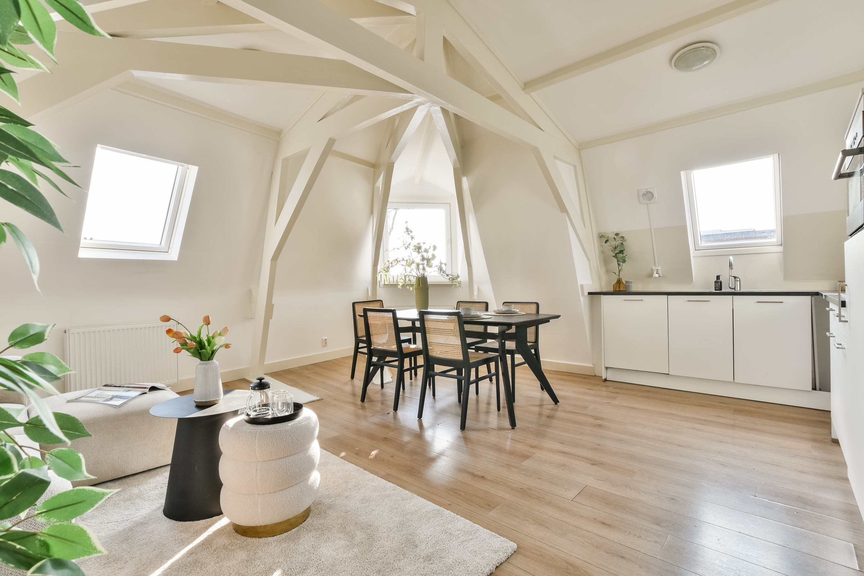 Inside, modern finishes meet classic charm: herringbone flooring, high ceilings, a brand-new kitchen, and a contemporary bathroom create a warm and stylish atmosphere throughout.