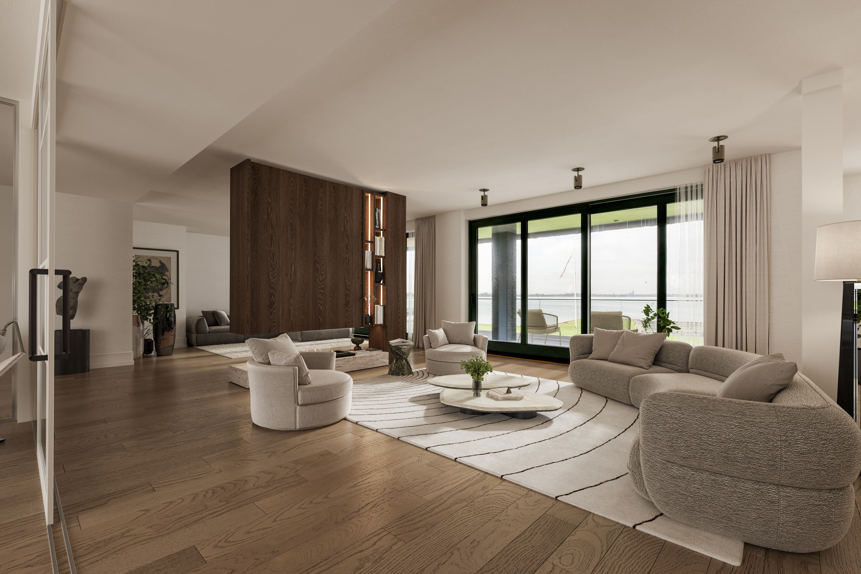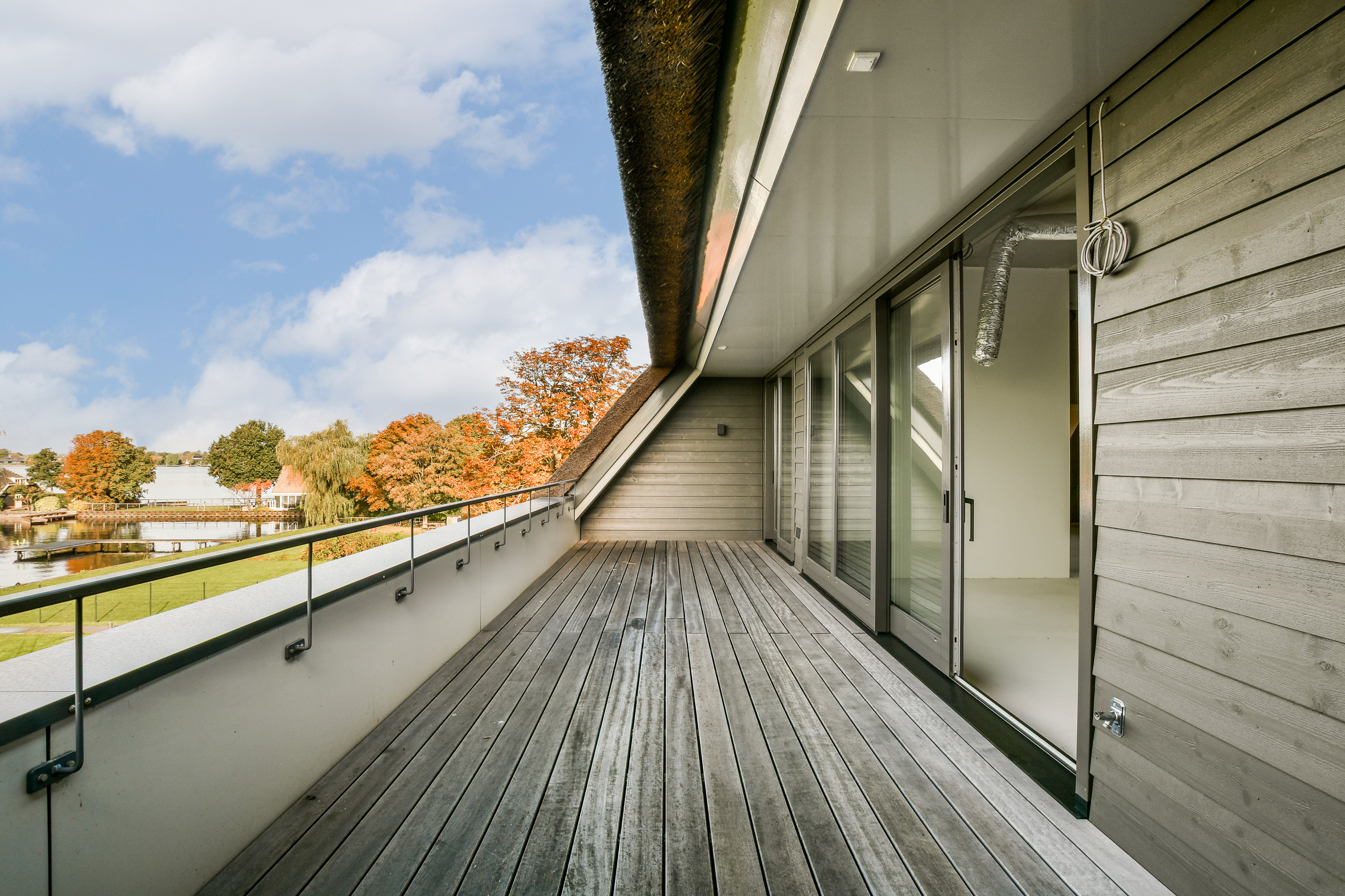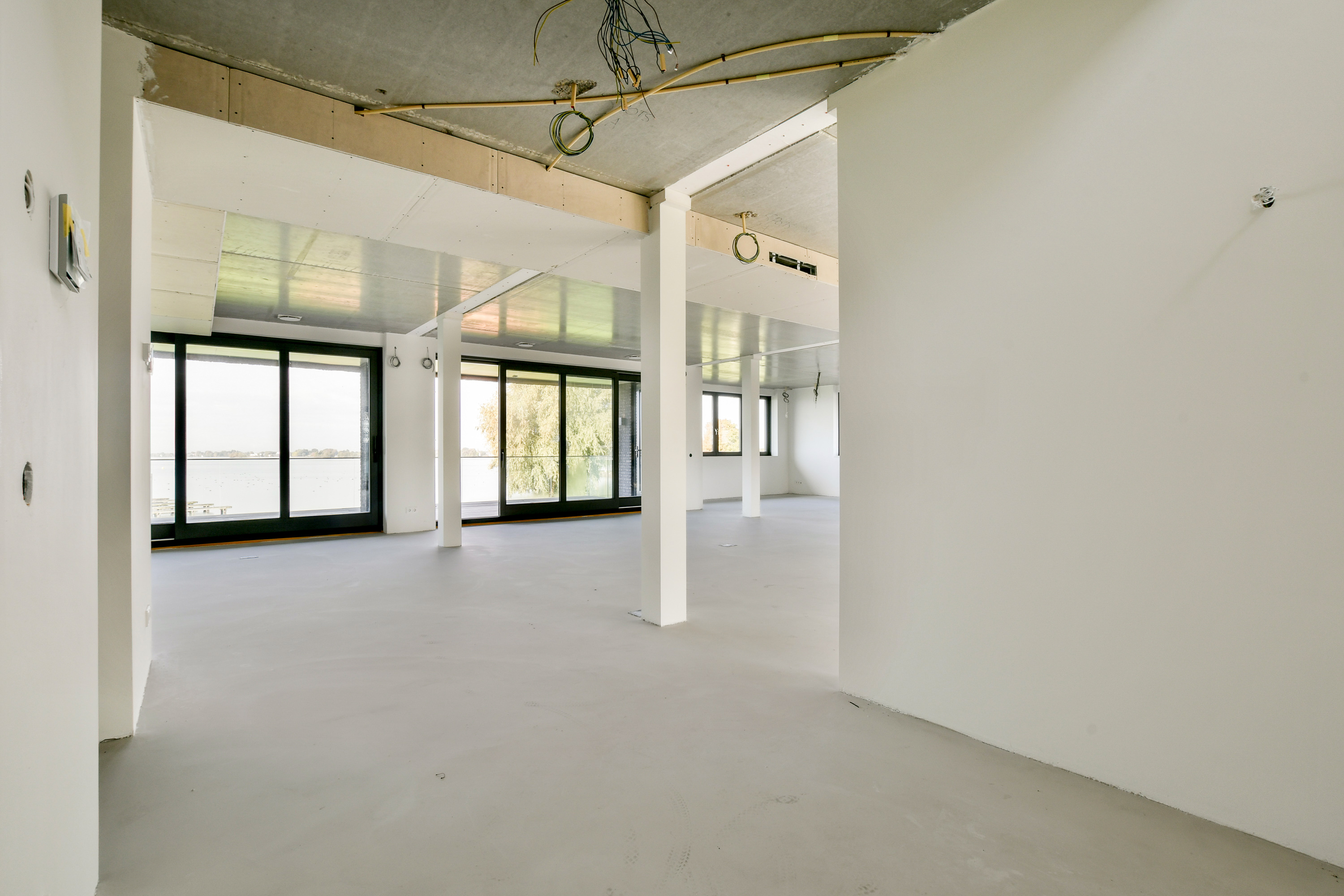 We offer for sale, including costs (price includes title transfer fees and is also a VAT-liable property), an energy-efficient semi-finished residence spread over two floors, located on the upper levels of a luxurious apartment villa. Here, you can enjoy a year-round holiday feeling. Take in the breathtaking panoramic views of the Vinkeveense Plassen in every season. Whether you are indoors or relaxing on the spacious terrace with glass balustrade—the Vinkeveense Plassen become an extension of your living space. The apartment villa leases the island on the lake from the AGV Water Authority.