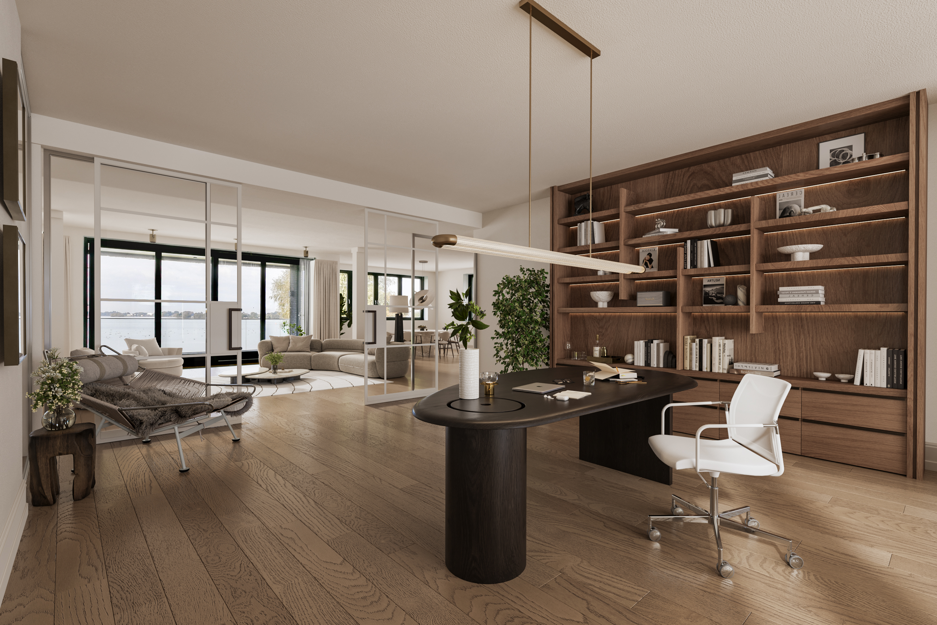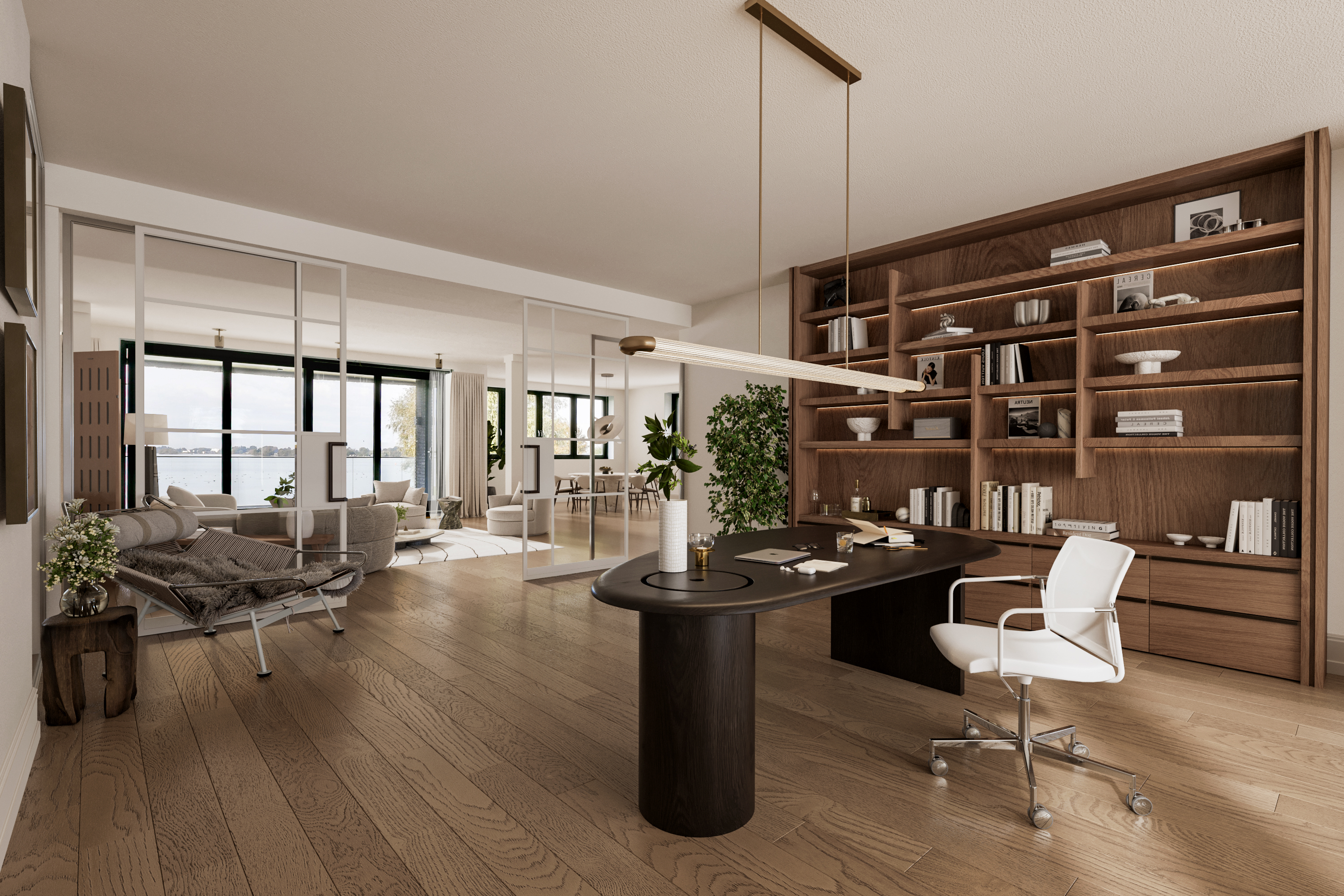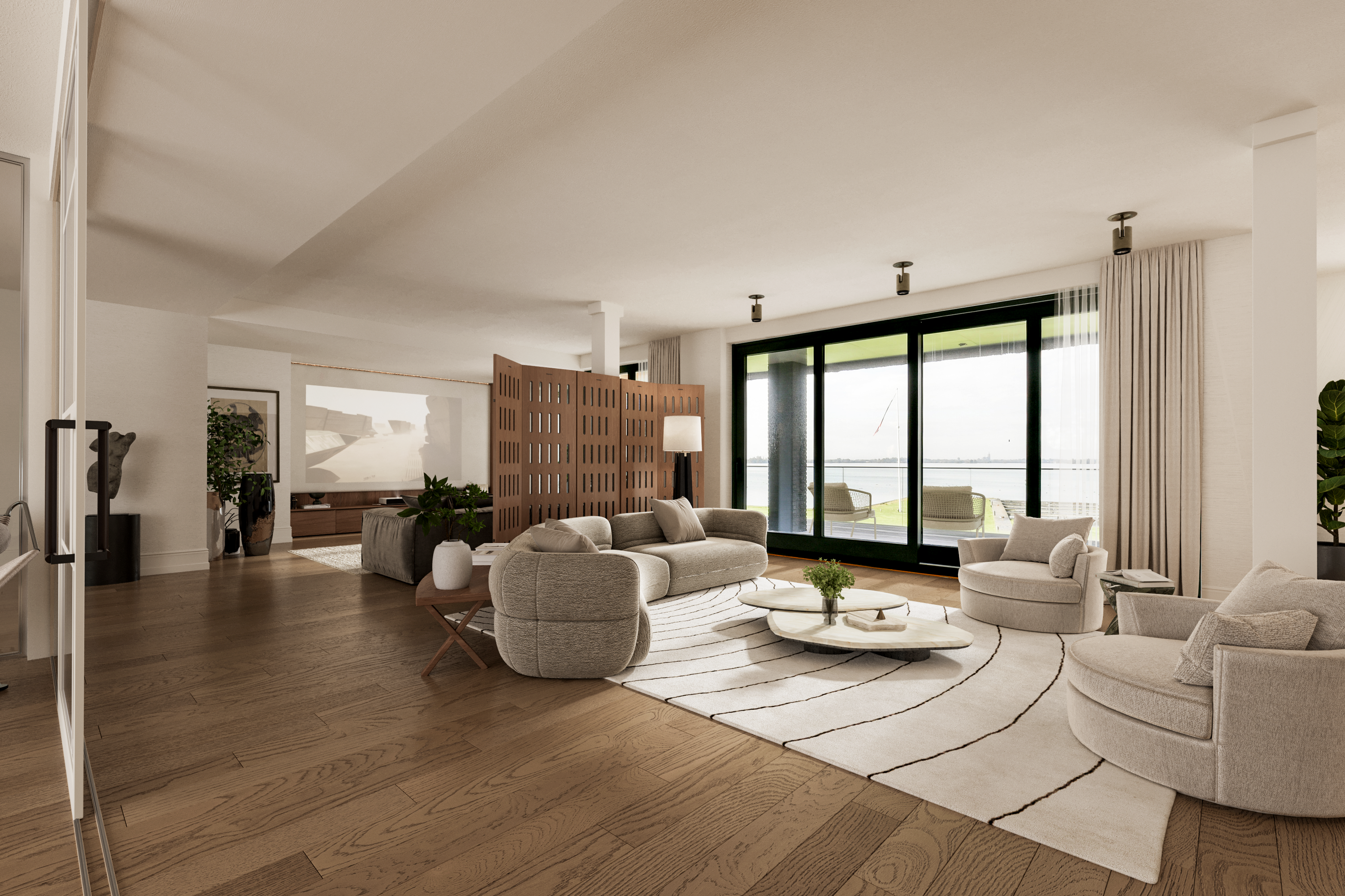 We offer for sale, including costs (price includes title transfer fees and is also a VAT-liable property), an energy-efficient semi-finished residence spread over two floors, located on the upper levels of a luxurious apartment villa. Here, you can enjoy a year-round holiday feeling. Take in the breathtaking panoramic views of the Vinkeveense Plassen in every season. Whether you are indoors or relaxing on the spacious terrace with glass balustrade—the Vinkeveense Plassen become an extension of your living space. The apartment villa leases the island on the lake from the AGV Water Authority.