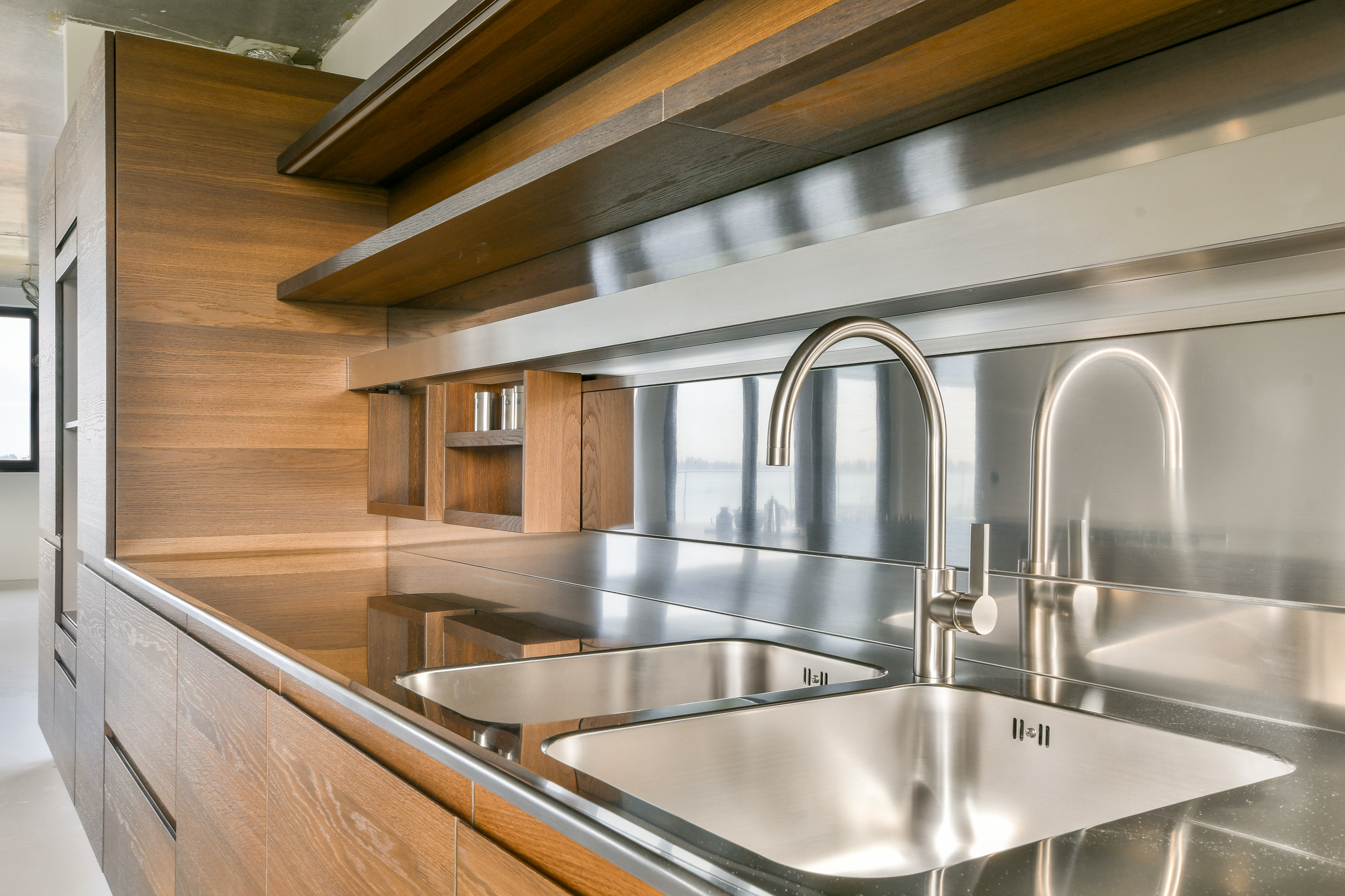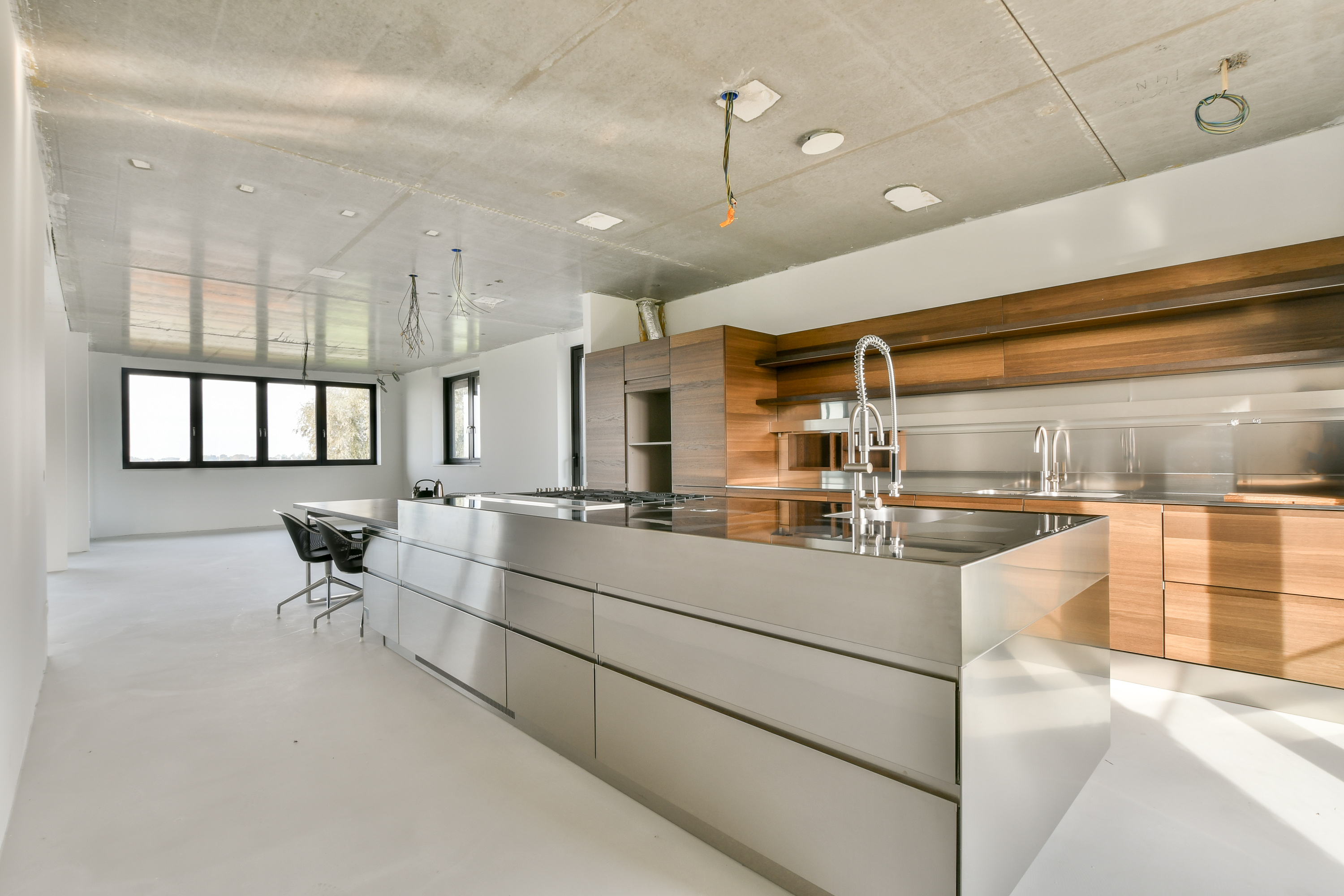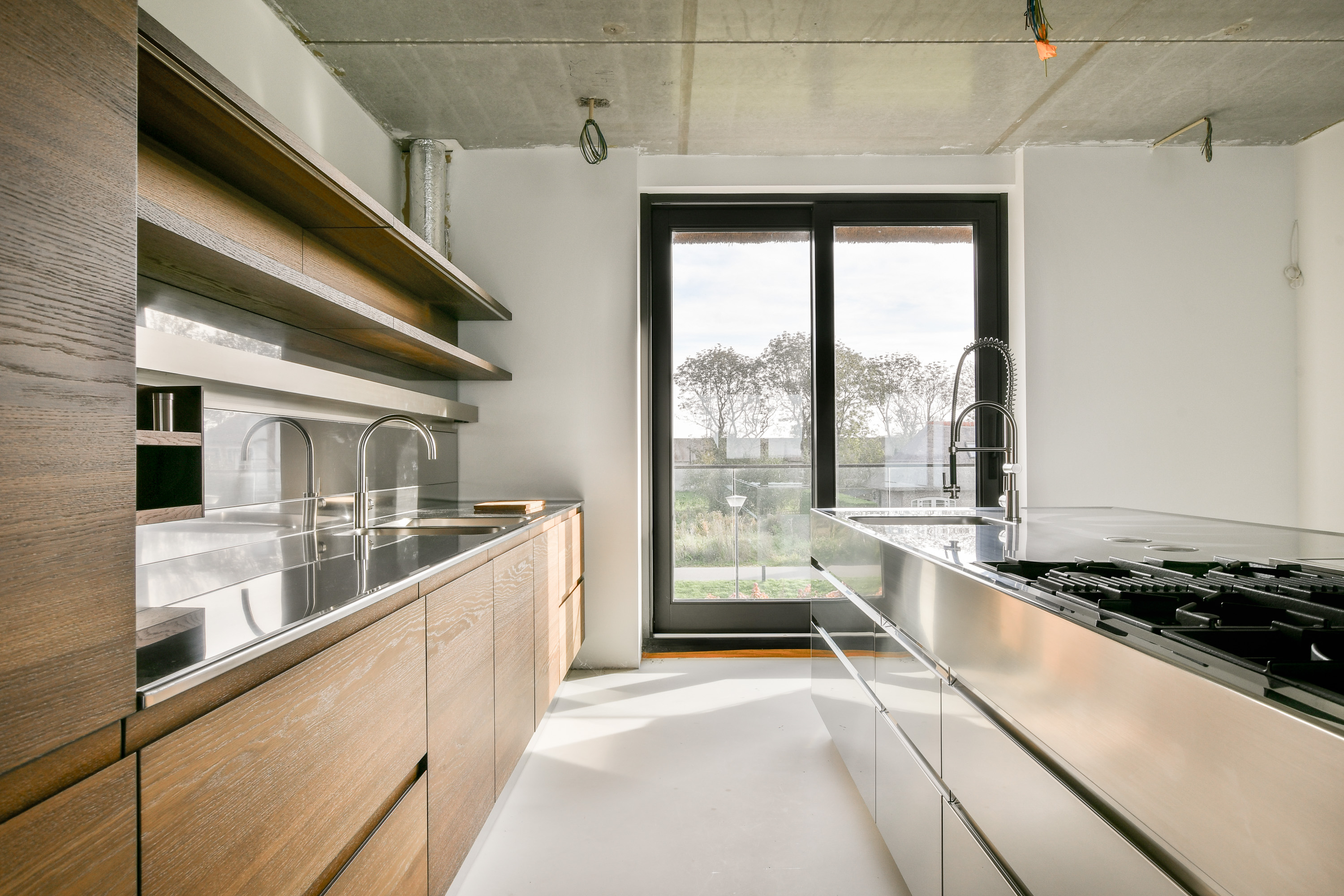 De moderne keuken (van het merk Arclinea) beschikt over een royaal kookeiland met aangrenzende tafel welke elektronisch in hoogte verstelbaar is.