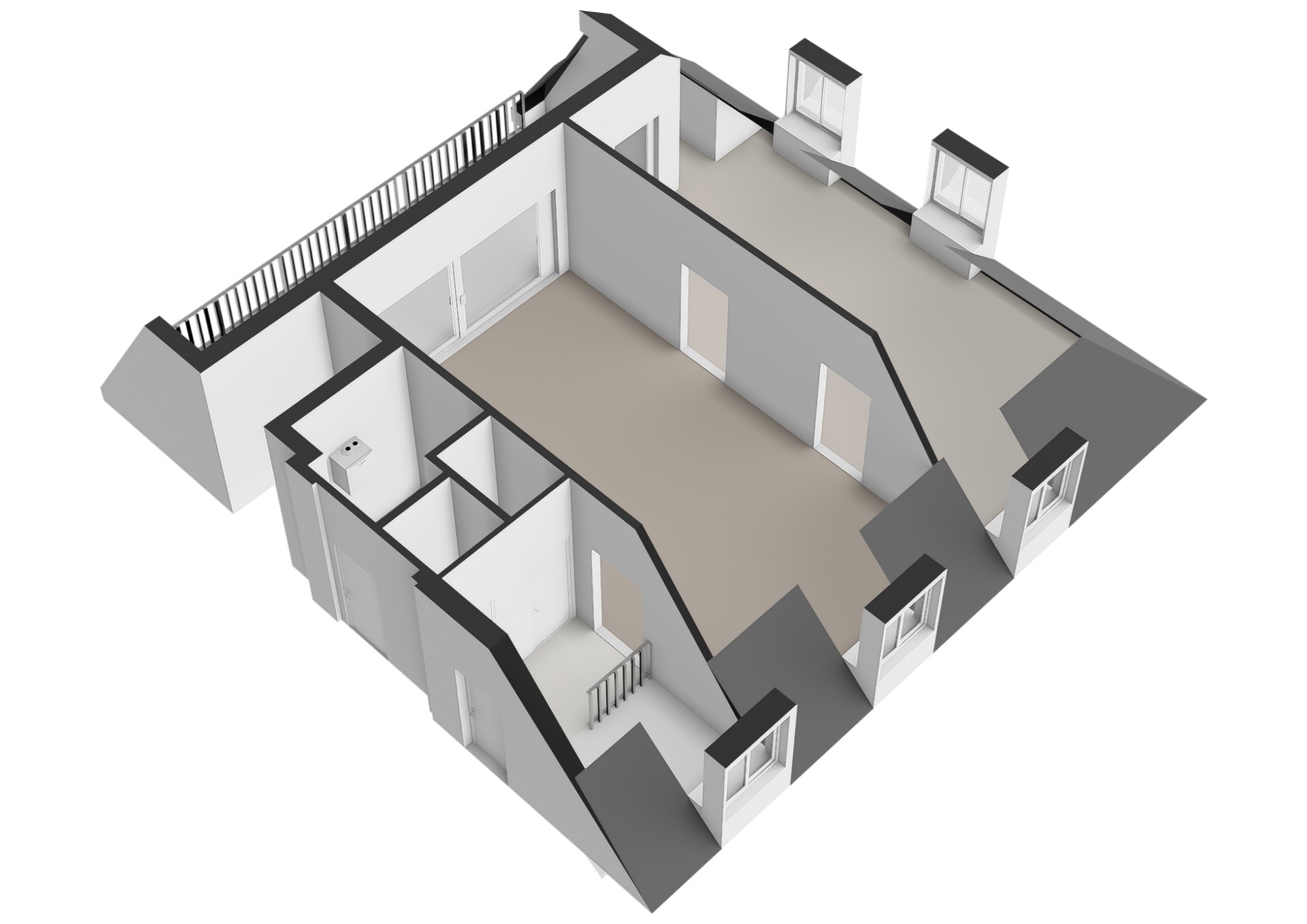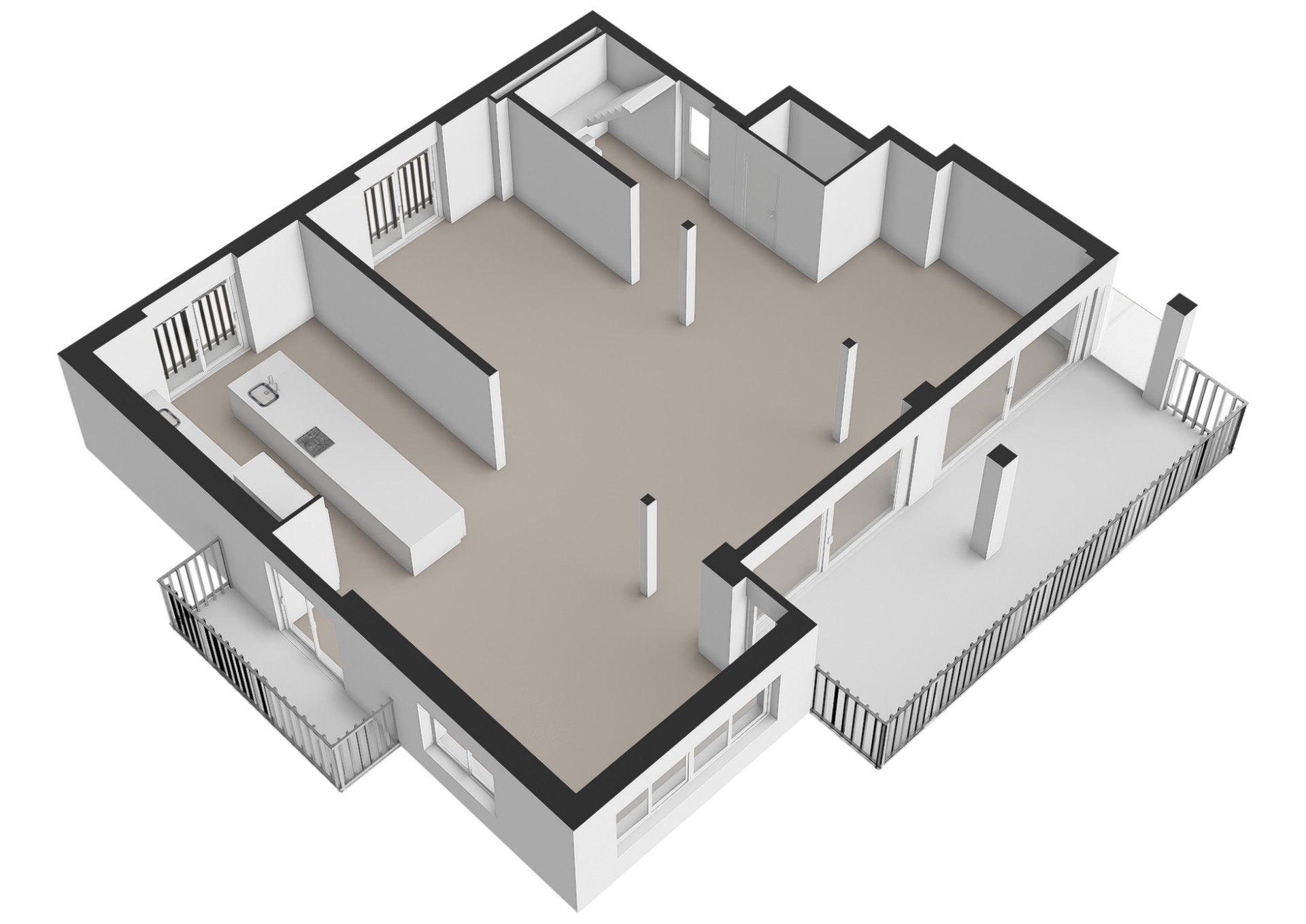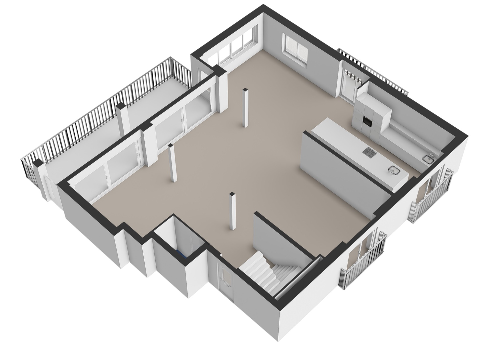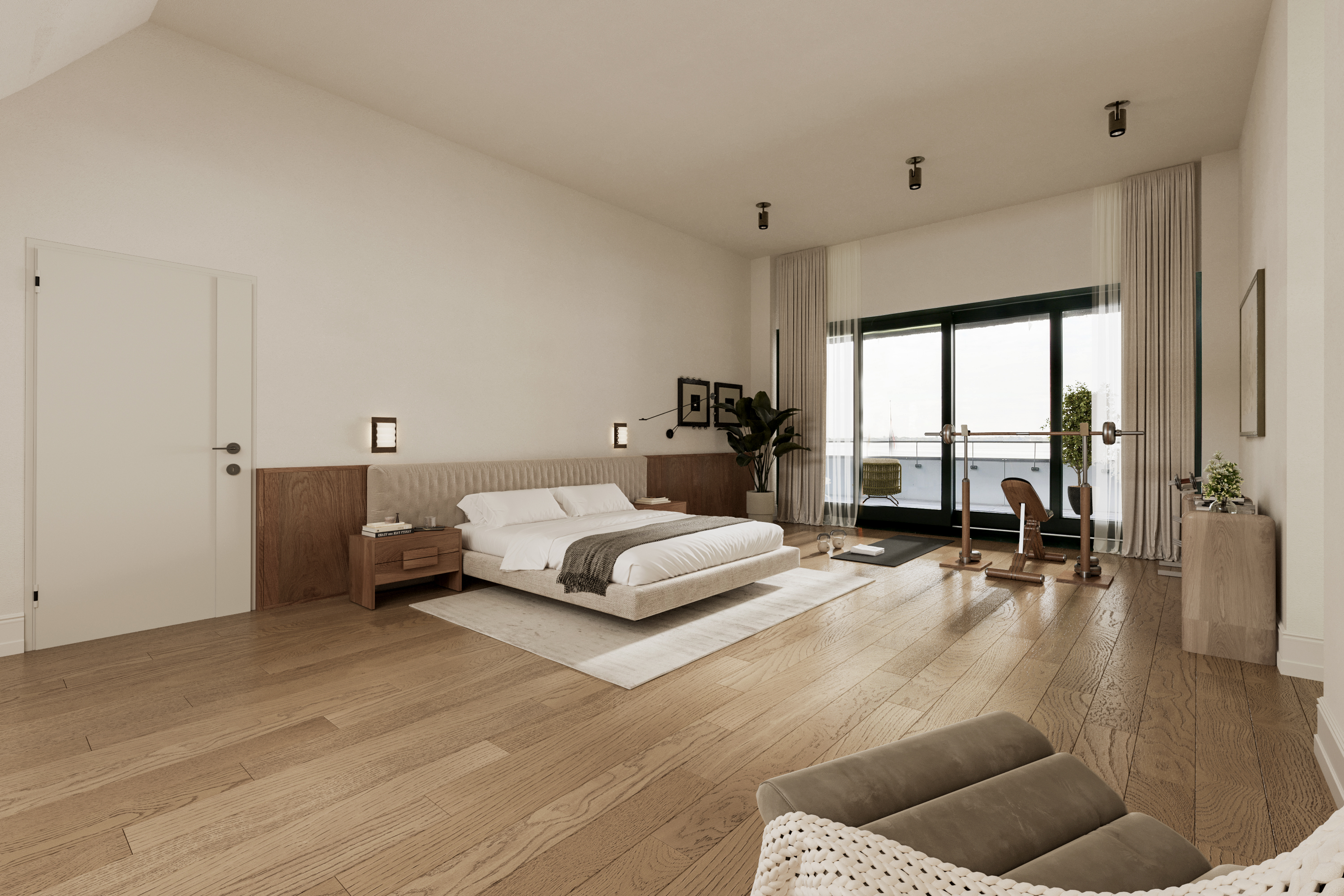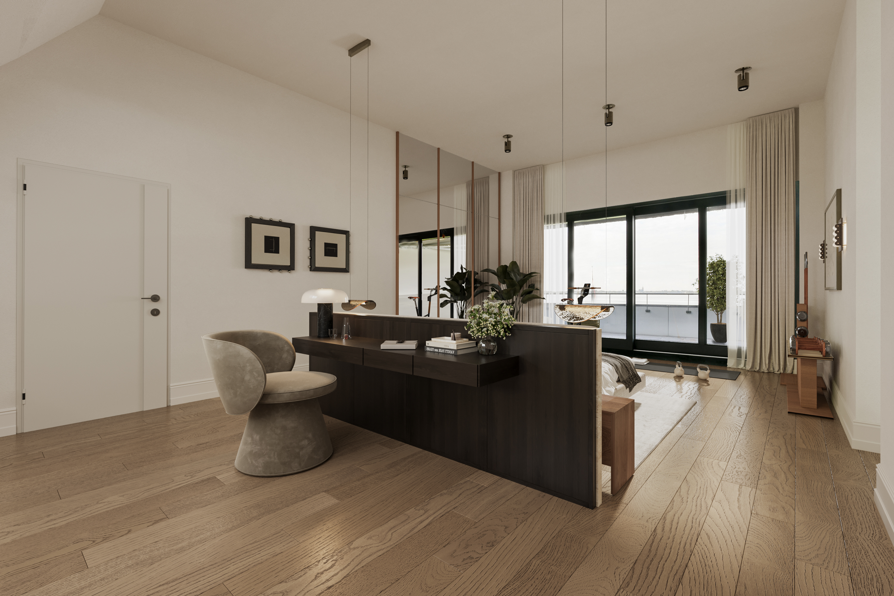 Voor het overige is de indeling volledig vrij te bepalen. Aansluitingen en leidingen zijn al voorbereid, zodat u eenvoudig een tweede slaapkamer, fitnessruimte of kantoor kunt creëren.