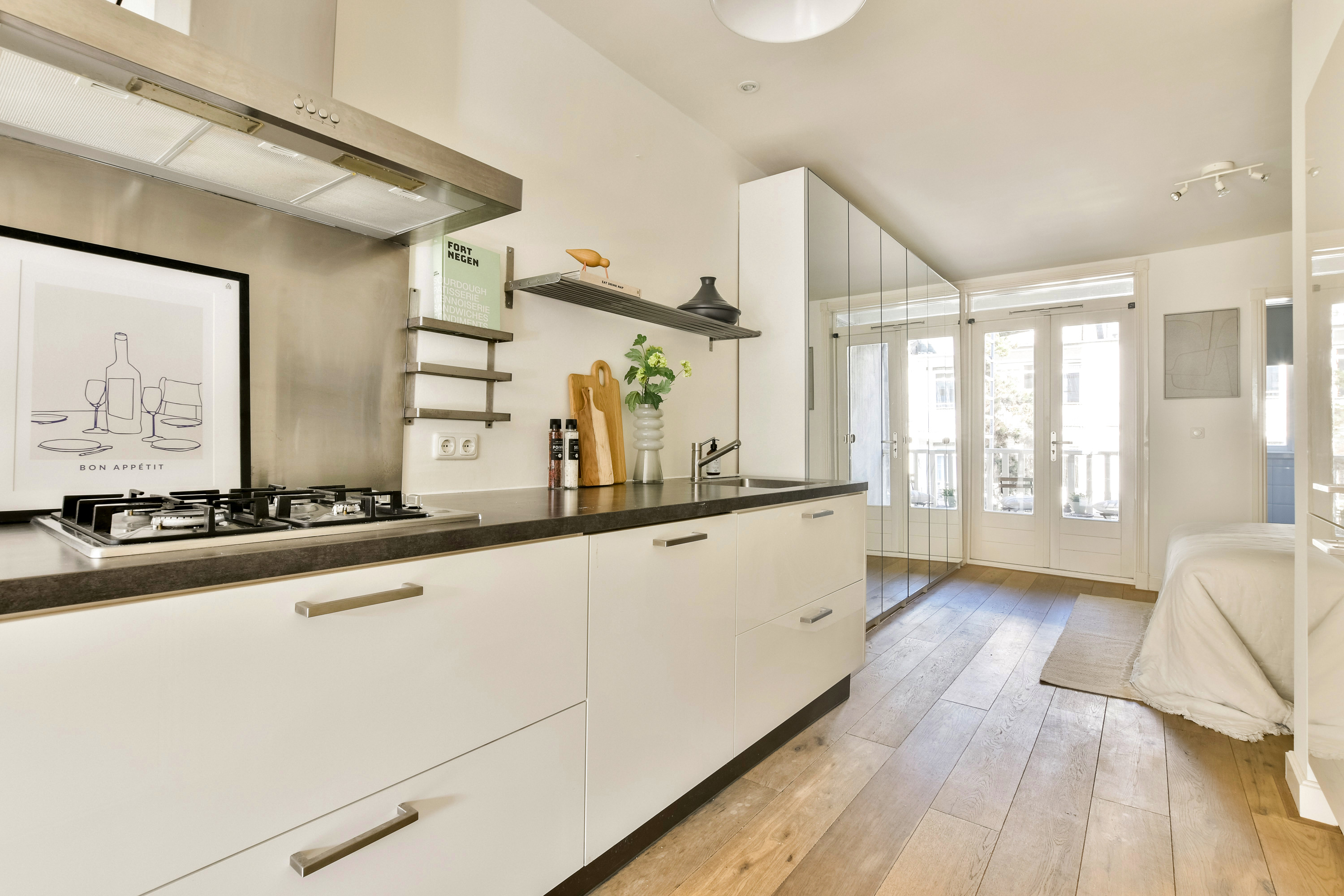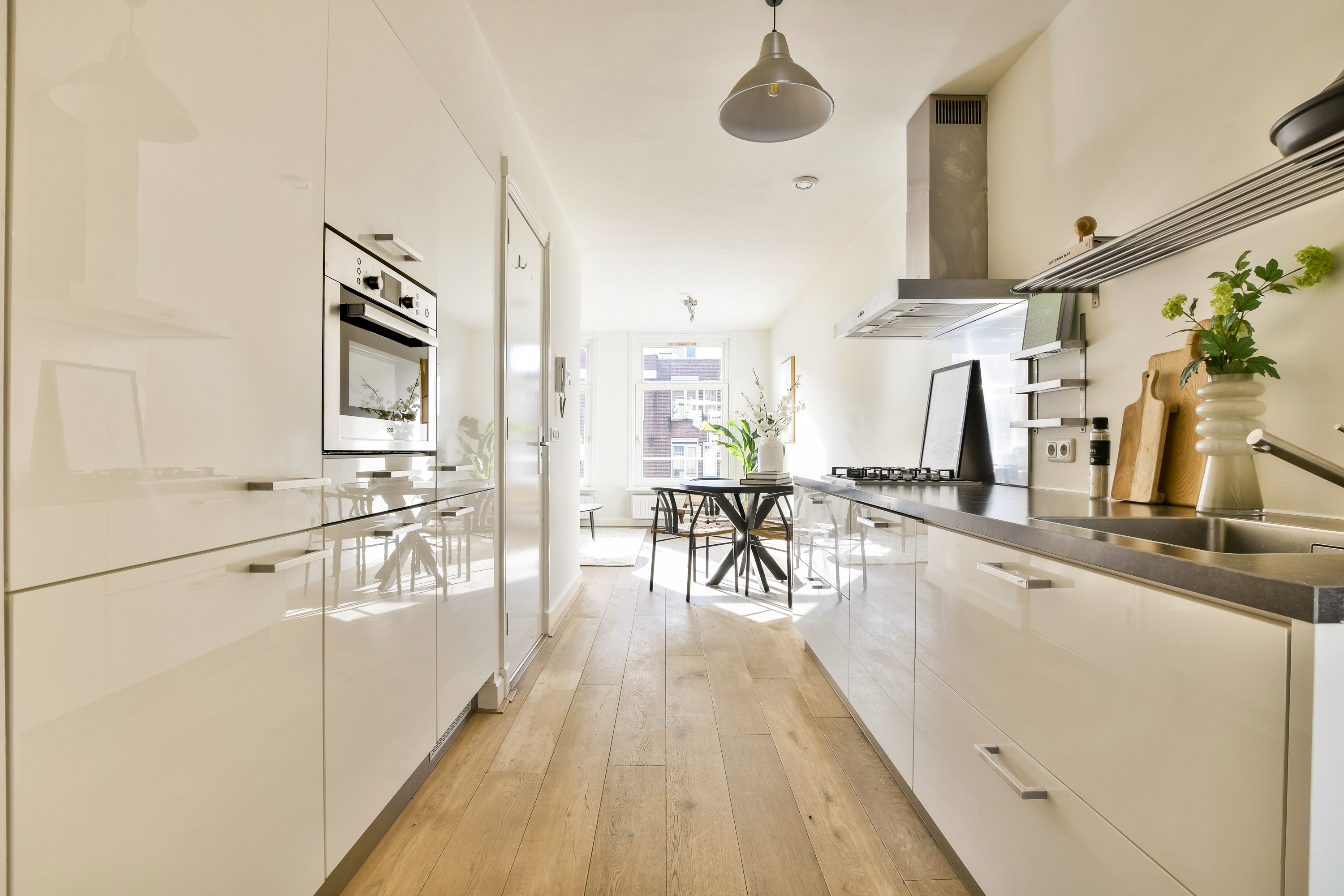 Aan de voorzijde bevindt zich de lichte woonkamer met eetgedeelte en open keuken. Dankzij de grote ramen aan de straatzijde valt hier prettig daglicht naar binnen en heeft u een levendig uitzicht over de Kinkerstraat. Dankzij de goed isolerende ramen is het fijn rustig binnen. De moderne keuken bevindt zich centraal in de woning en vormt een praktisch geheel met de woonruimte.
