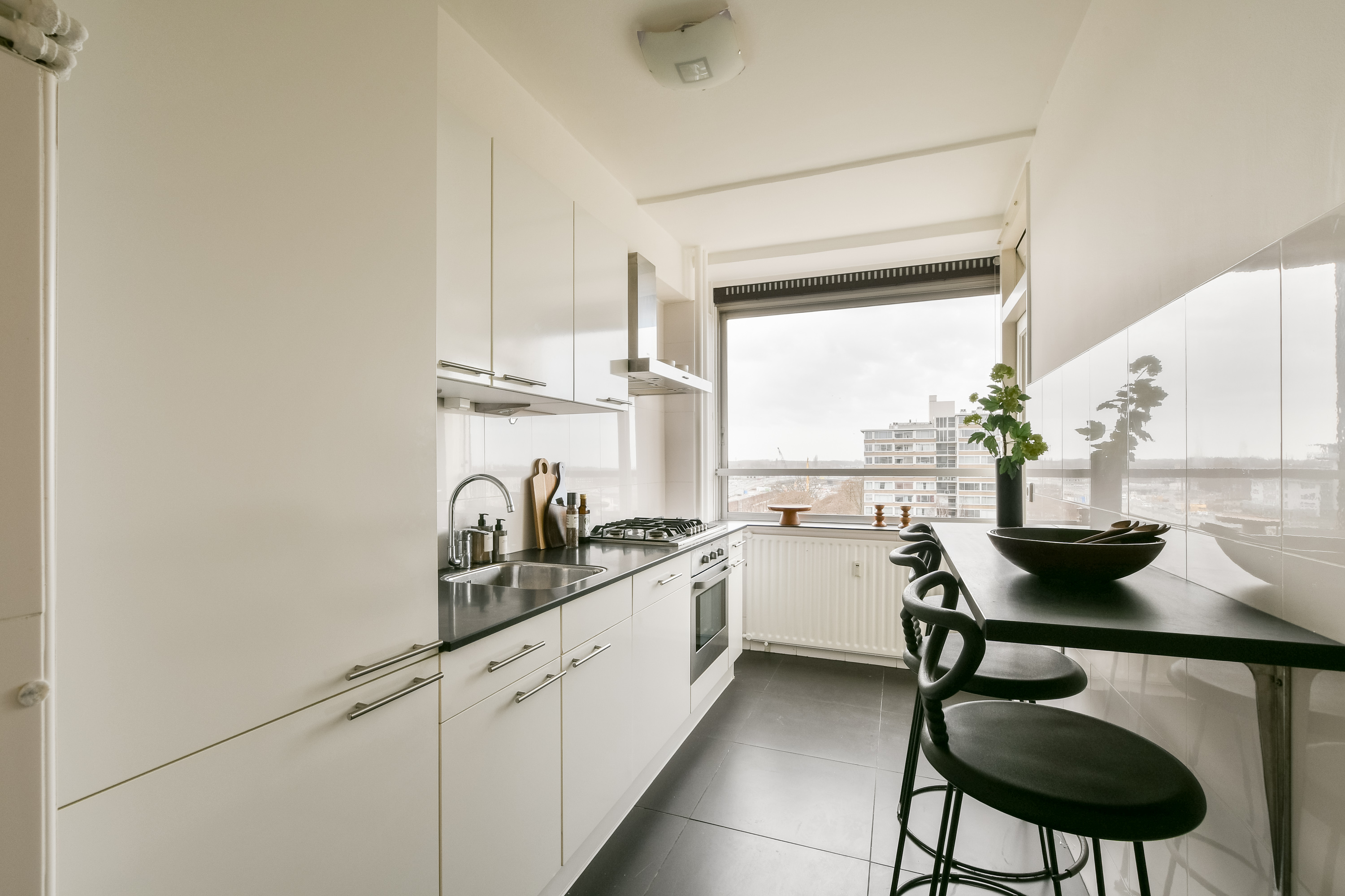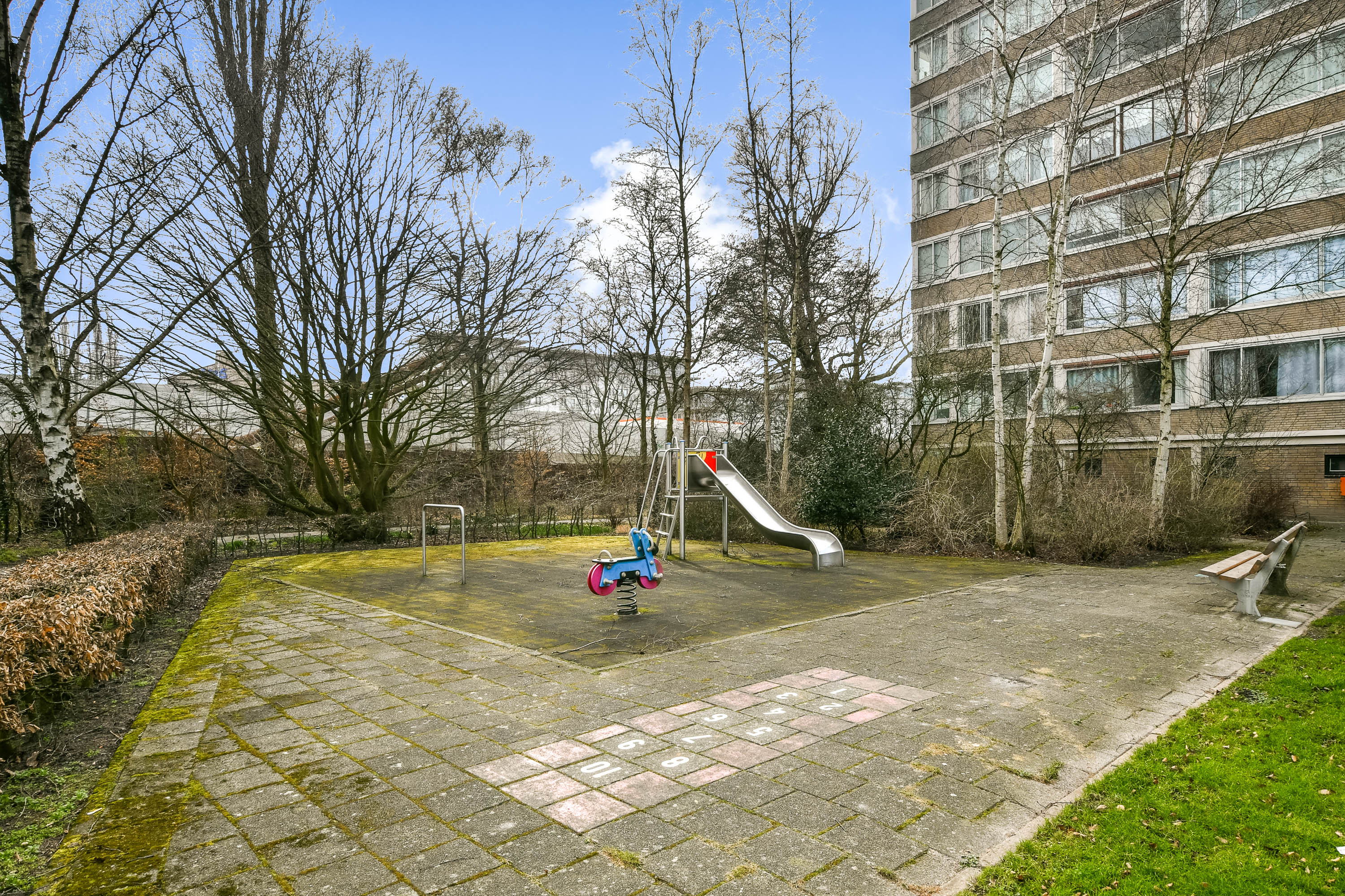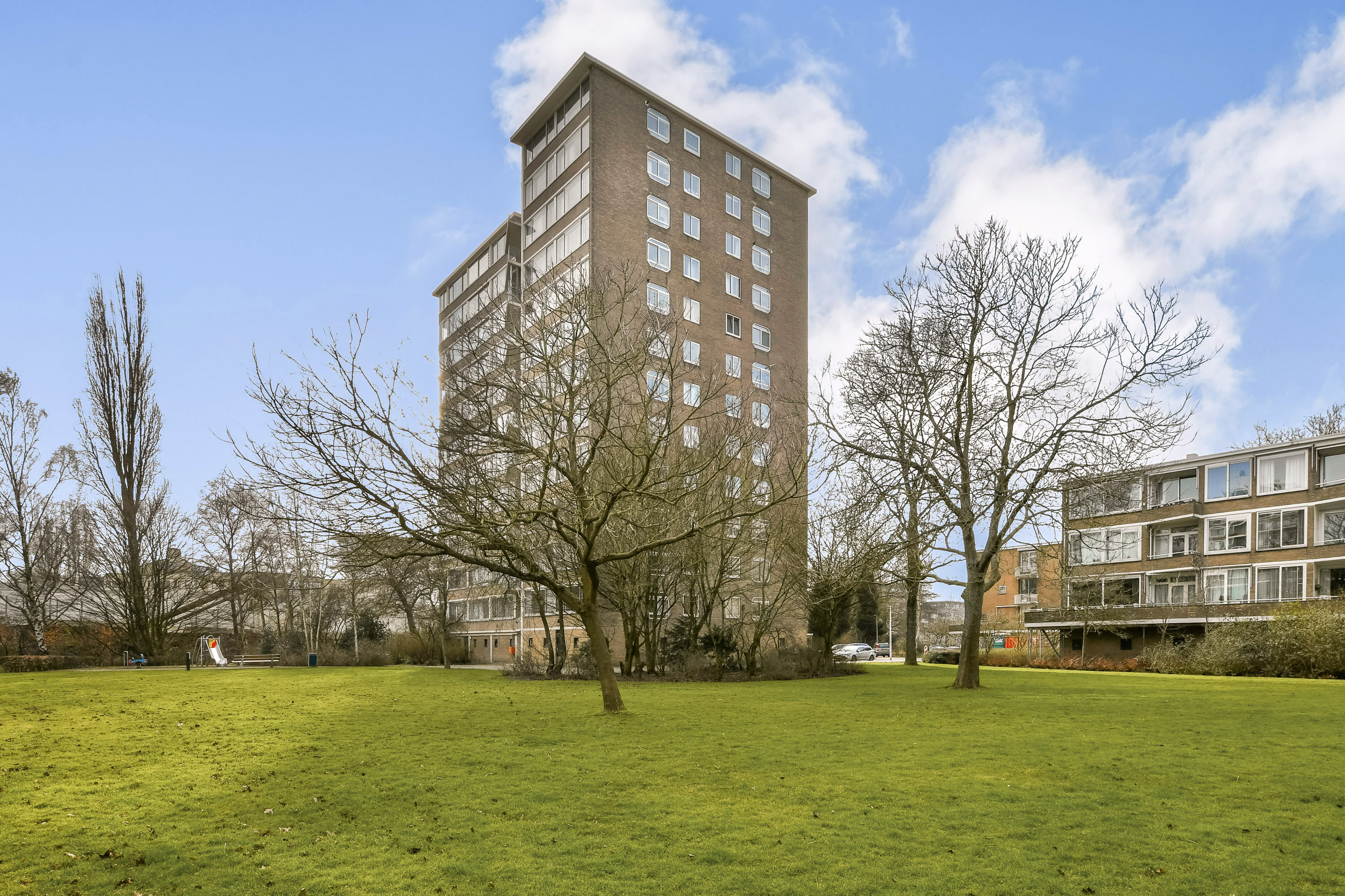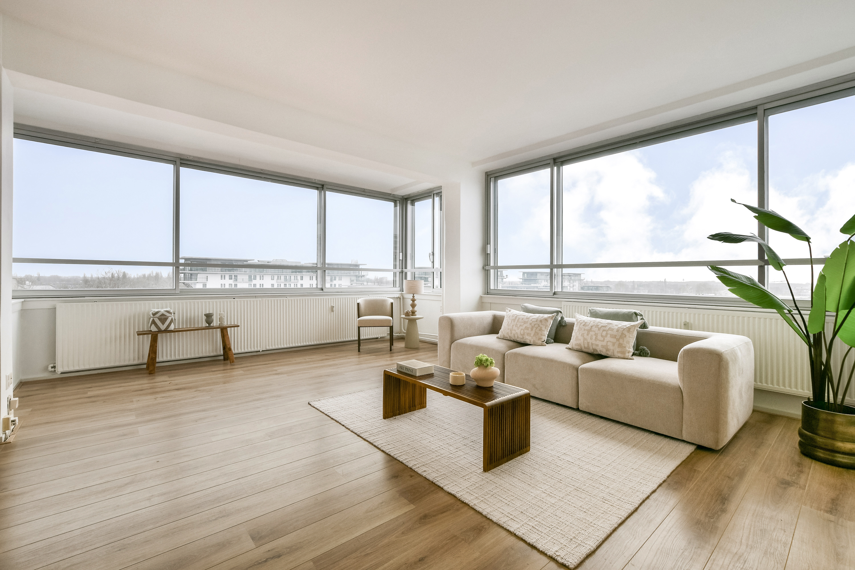 Situated on the 9th floor of a well-maintained apartment complex with lift, this generous 2-bedroom apartment of approximately 107 m² offers two sunny loggias, panoramic city views and a bright, airy atmosphere. Perfectly located in the centre of Amstelveen, within walking distance of the Stadshart shopping centre and all amenities.