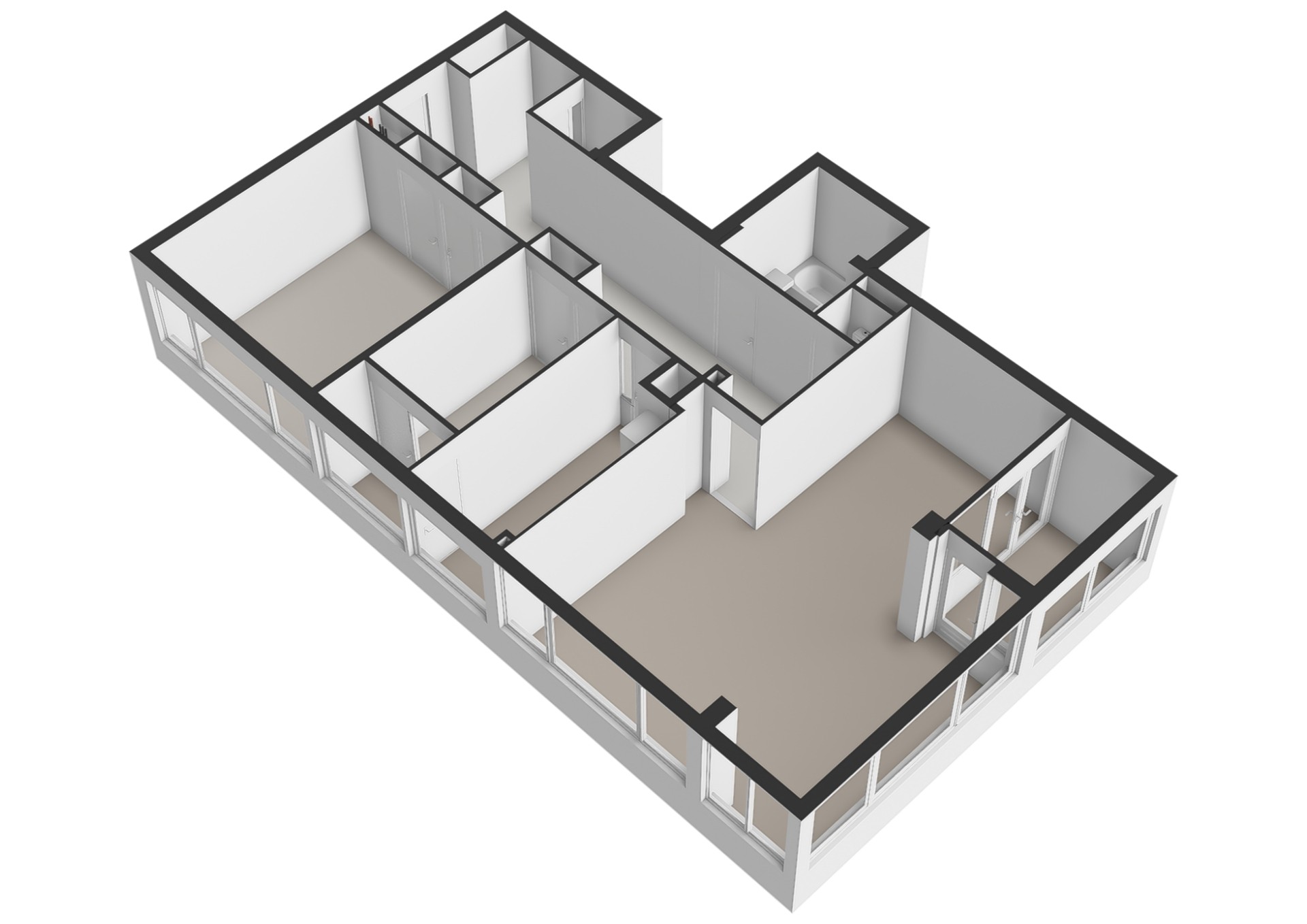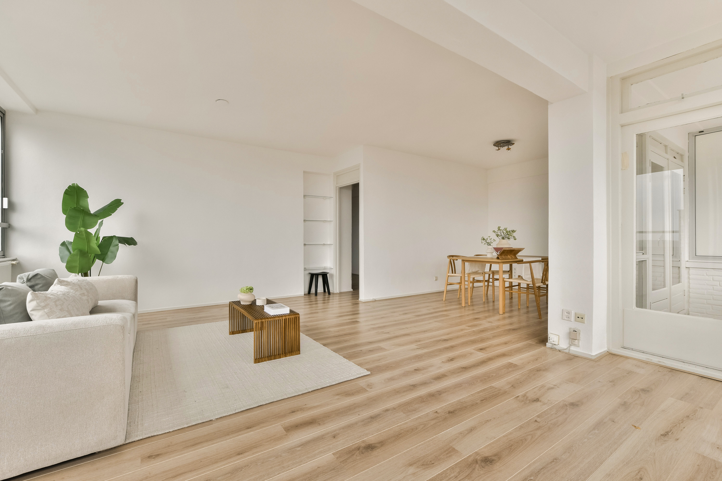 - L-vormige woonkamer met brede raampartijen en veel licht
